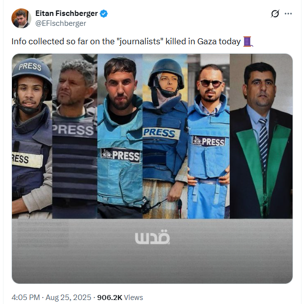 Incitement #3Yet another Palestinian journo killed in Gaza. And by "journalist," I of course mean he was actually the head of Hamas’ anti-tank operations in northern Gaza