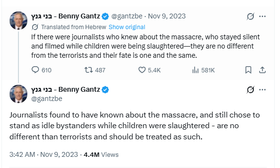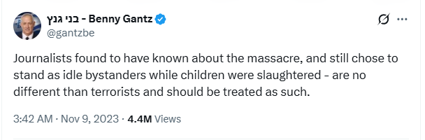 Incitement #56Real journalists uphold strict ethical and professional standards - and are worthy of protection. Hamas terrorists and their accomplices, including “journalists” who on Oct. 7 invaded Israel and gleefully filmed the slaughter - should be determinedly hunted and eliminated.